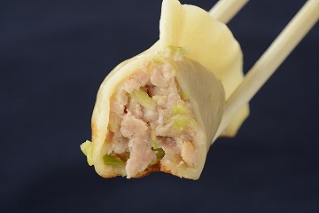 日本人好みに、さっぱりといただける餃子です。白菜と国産豚肉の比率は5:5。その為白菜の素材の味が十分に味わえます。白菜の甘味と水分が肉の旨みとが絶妙に絡み合い、お互いに素材が良いバランスを保っています。また白菜の水分と肉汁のコラボレーションがよりジューシーさも増しています。付けダレや調理法によって幾種にも多様な味わい方ができる餃子です。それもシンプルで素材の味がしっかりしているからこそ。このみずみずしい餃子をぜひ一度召し上がってみてください。